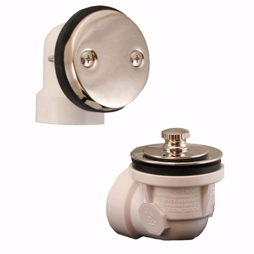 Polished Nickel Two-Hole Friction Lift Bath Waste Kit, Standard Half Kit, PVC