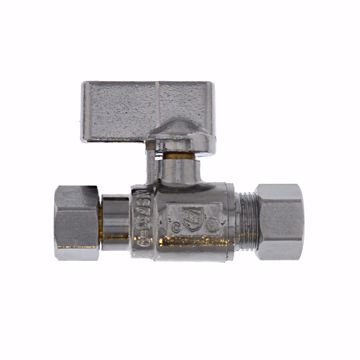 3/8" OD Comp x 3/8" OD Comp Quarter-Turn Straight Supply Stop Valve, Chrome Plated